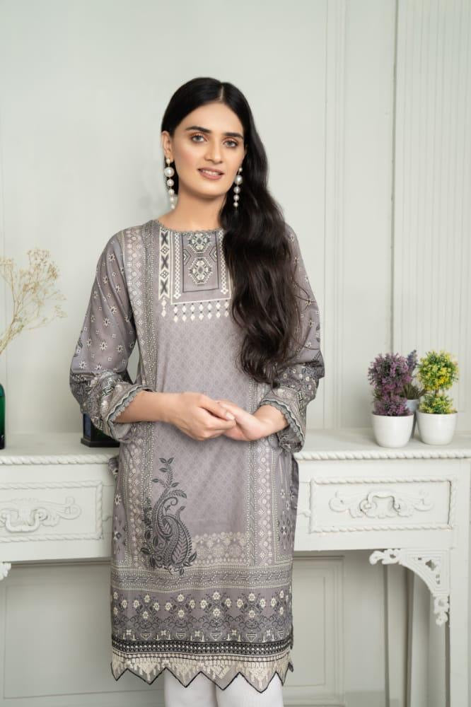 Introducing our exquisite lawn kurta, featuring a stunning combination of digital print and intricate embroidery. This elegant piece is perfect for any occasion, adding a touch of sophistication to your ensemble. Made with high-quality fabric, this lawn kurta is not only stylish but also comfortable to wear. Elevate your wardrobe with this timeless and versatile garment that effortlessly blends traditional craftsmanship with modern design.