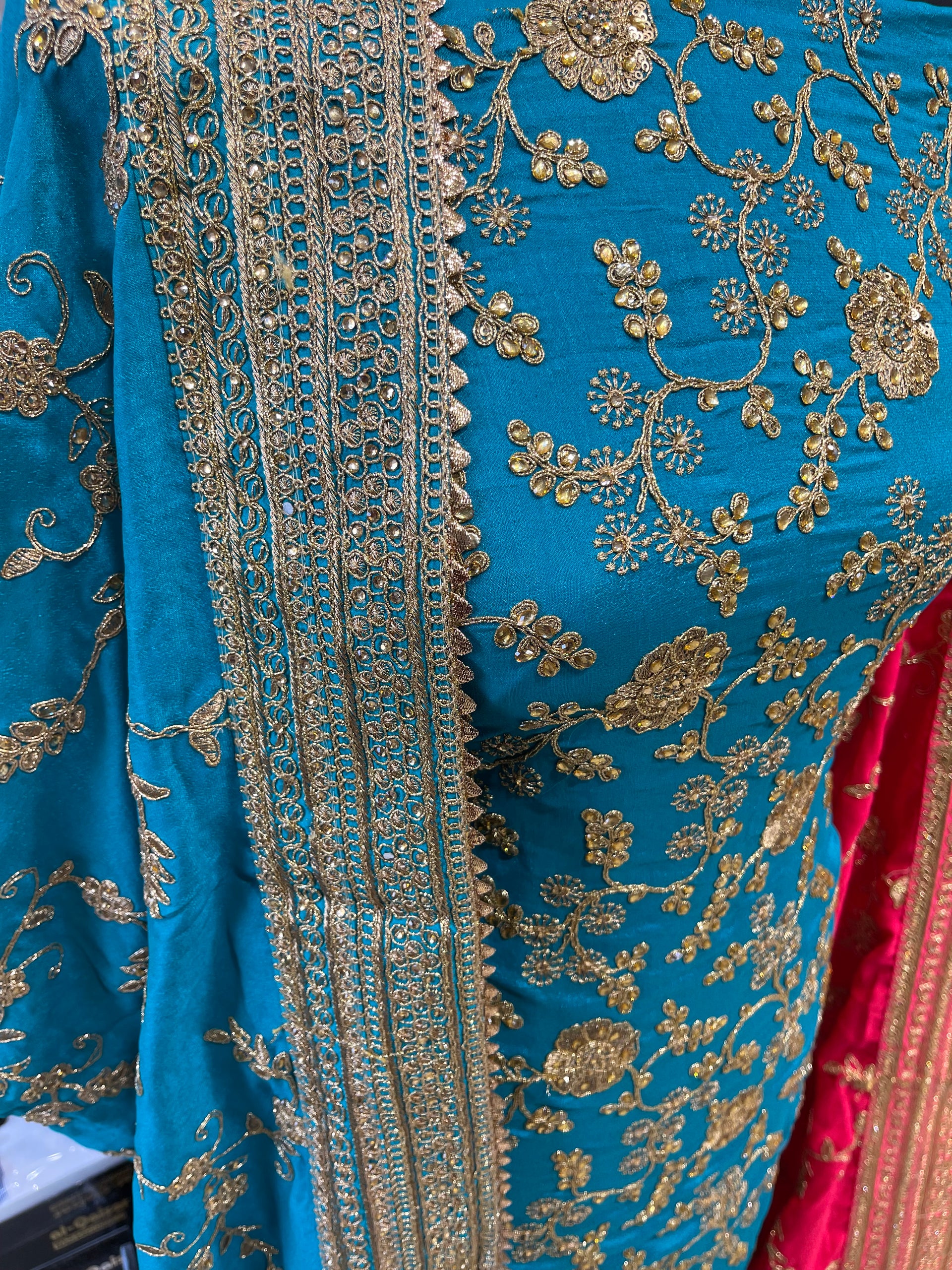 Winter wear, alpine material with front and back thread embroidery and digital print, comes with embroidered alpine shawl. Available in five pastel colours.