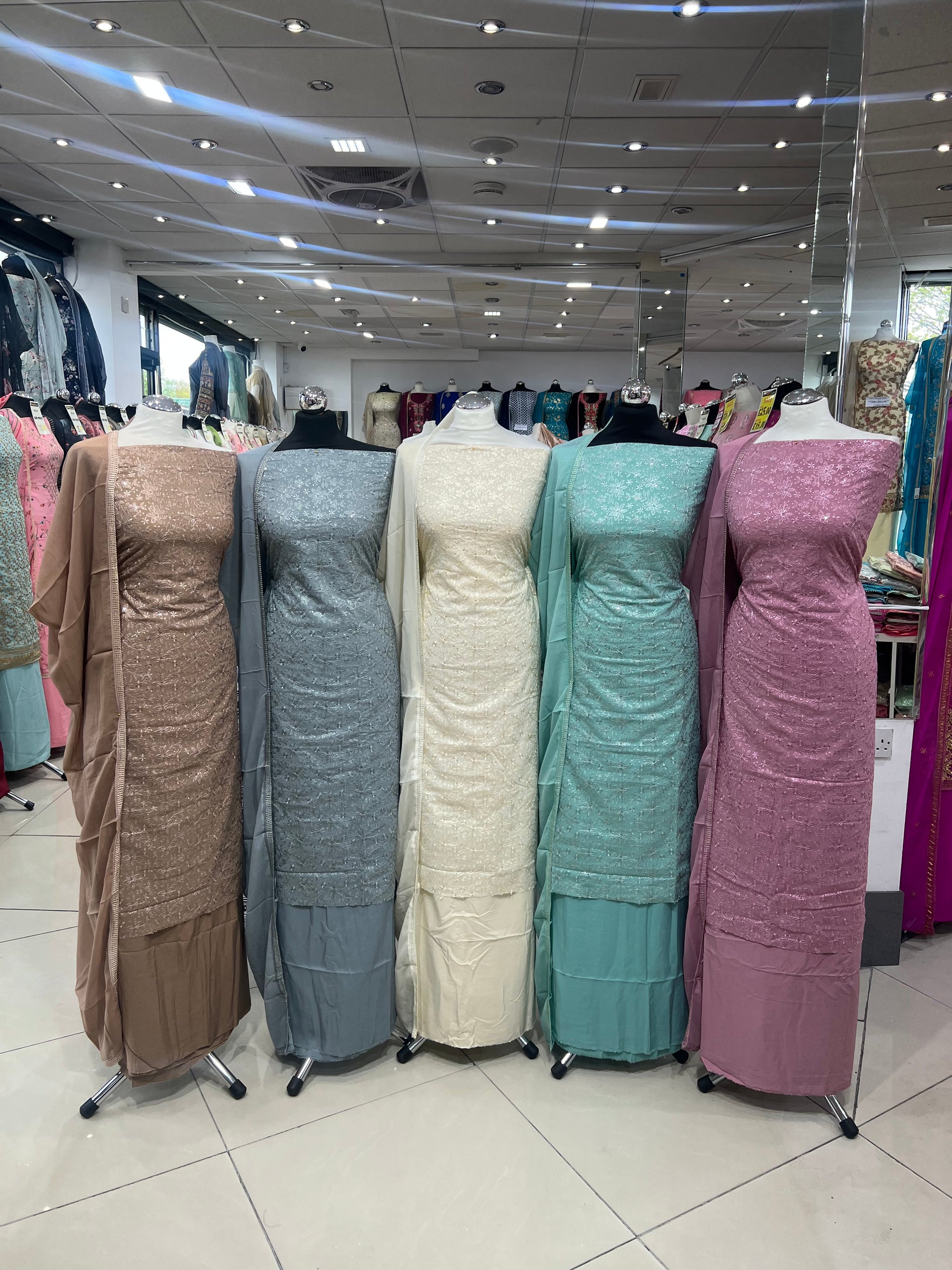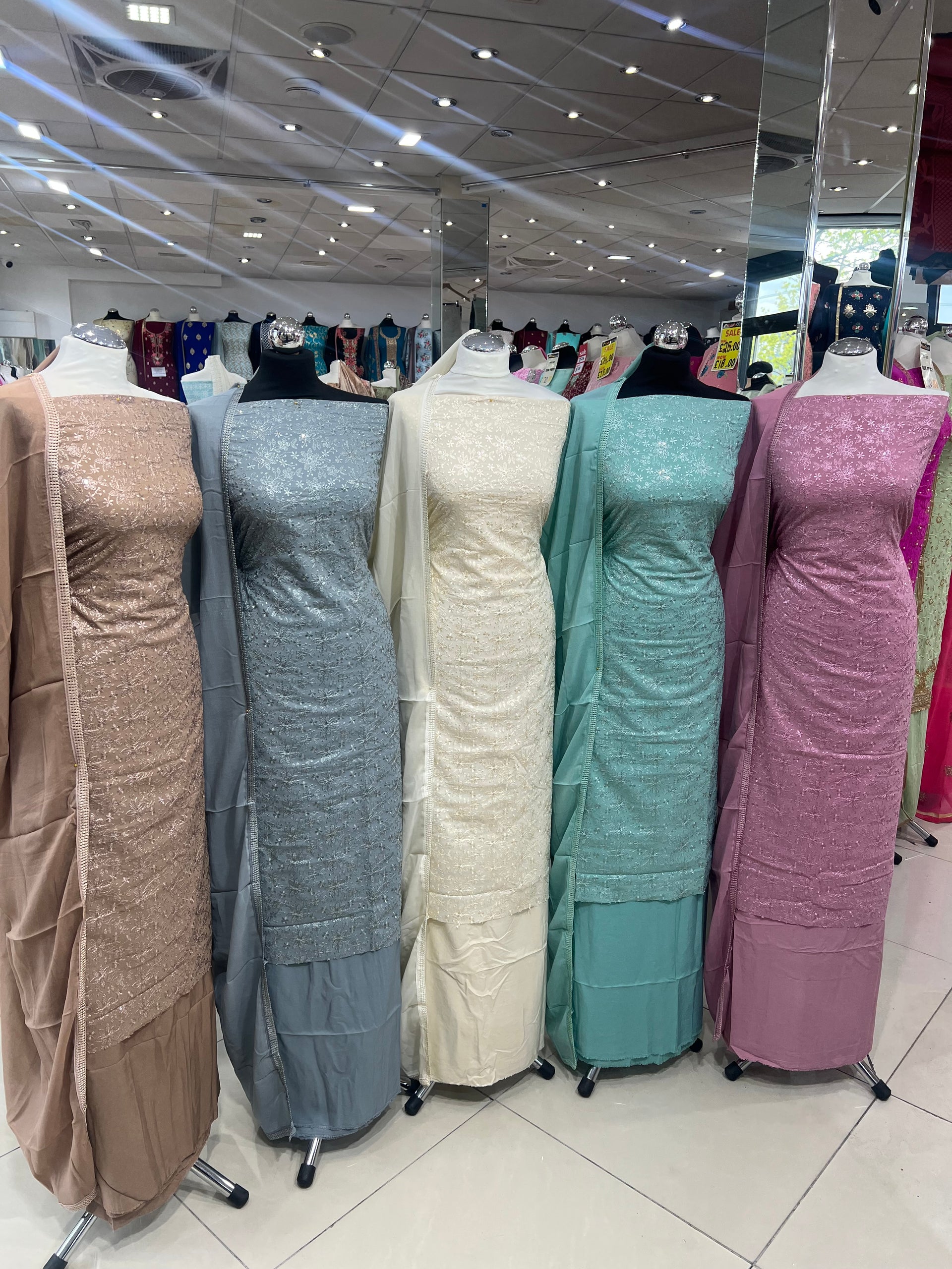 Elevate your wardrobe with the Eliza Embroidered Georgette suits, crafted from luxurious embroidered pure georgette fabric adorned with delicate embellishments. This stunning piece comes with a chic crepe dupatta featuring elegant lace, making it an ideal choice for gifting or special occasions. With a variety of styles, colours, you are sure to find the perfect suit that reflects your unique personality. Embrace elegance and comfort, and transform your look with our latest arrivals—shop now to experience the perfect blend of style and sophistication.