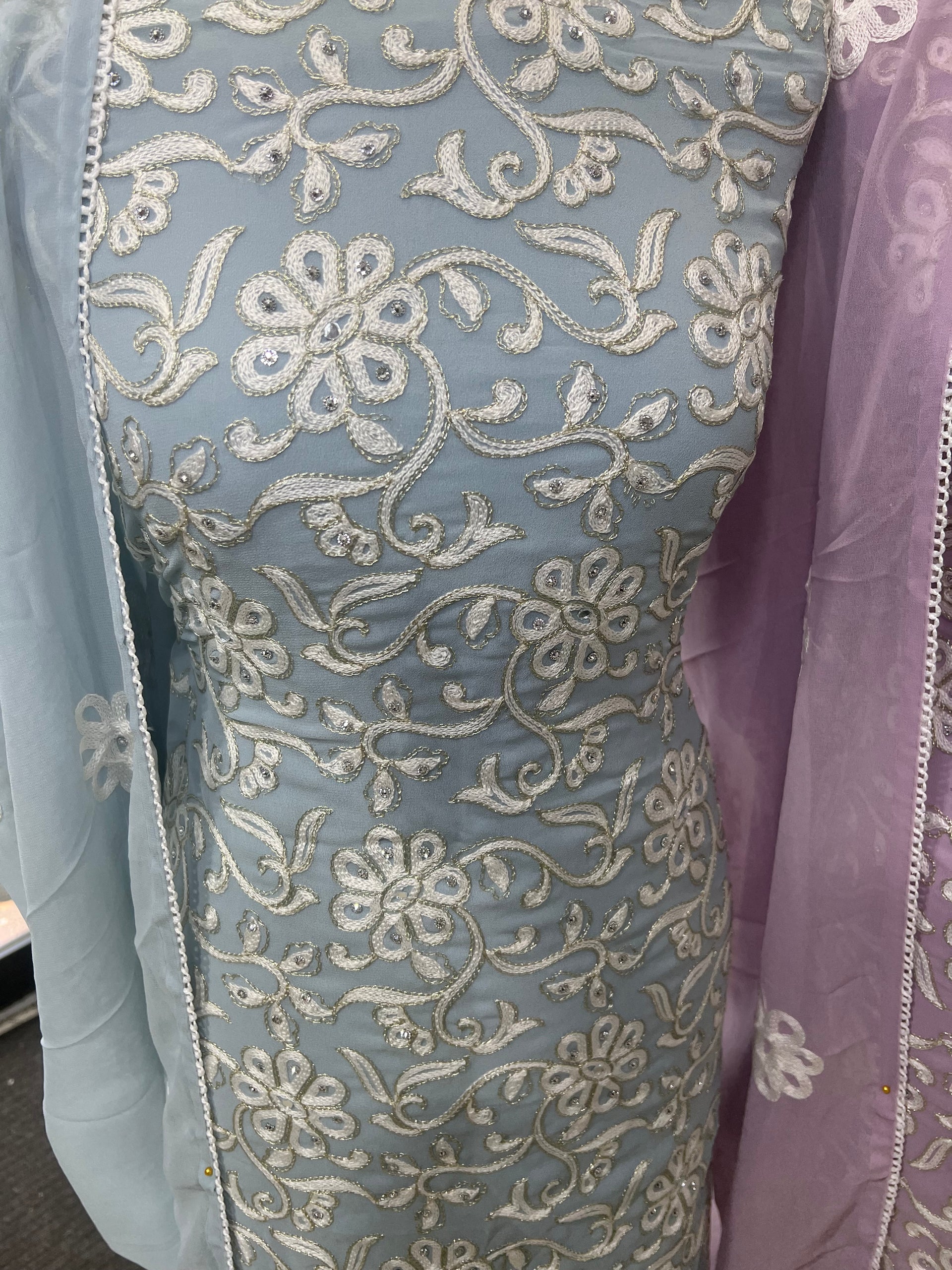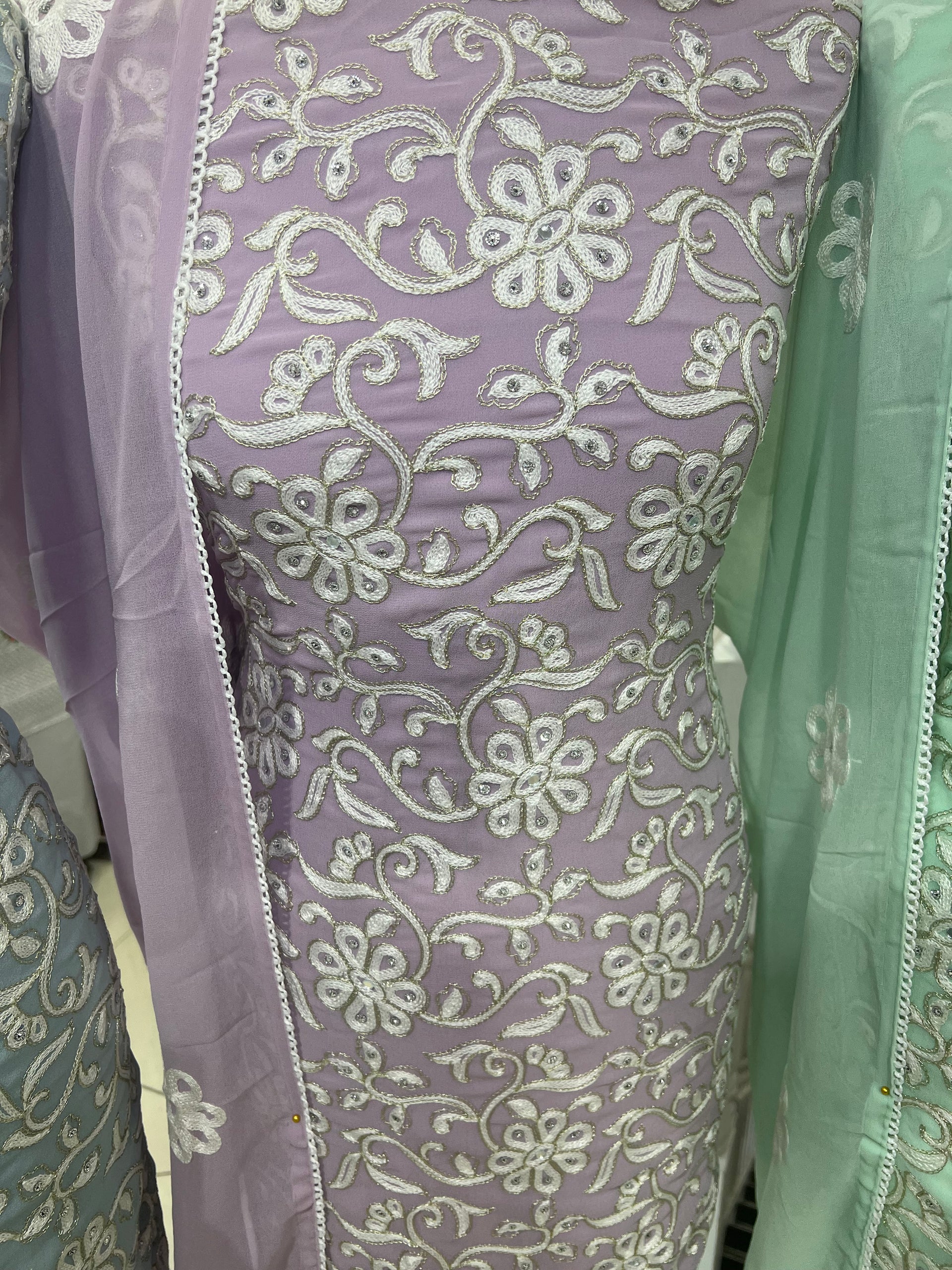 Discover the elegance of our Embroidered Georgette suits, available in a stunning array of colours to suit every occasion. Each suit features intricate thread embroidery that adds a touch of sophistication and uniqueness, making them perfect for both casual outings and formal events. The lightweight, breathable fabric ensures comfort while maintaining a flattering silhouette, allowing you to move with grace and confidence. Elevate your wardrobe with these versatile pieces that promise to turn heads and make a lasting impression.