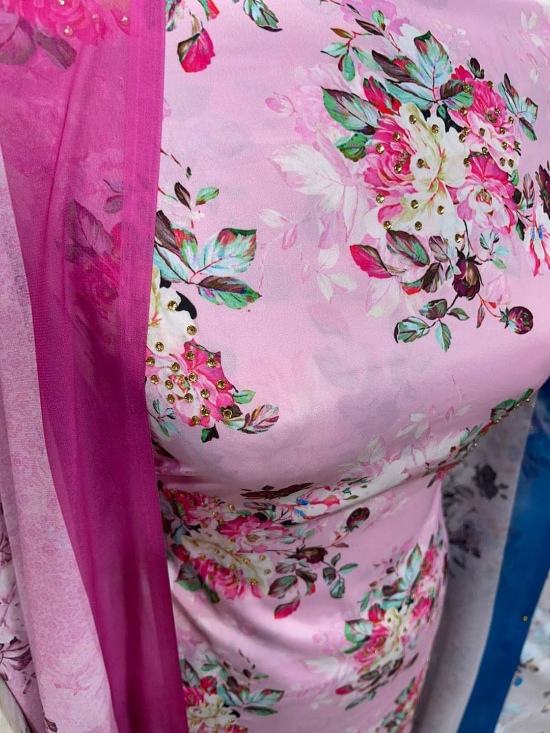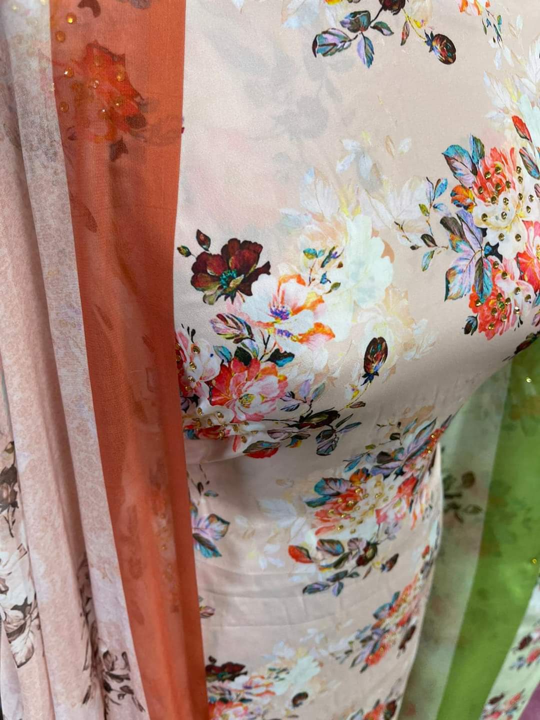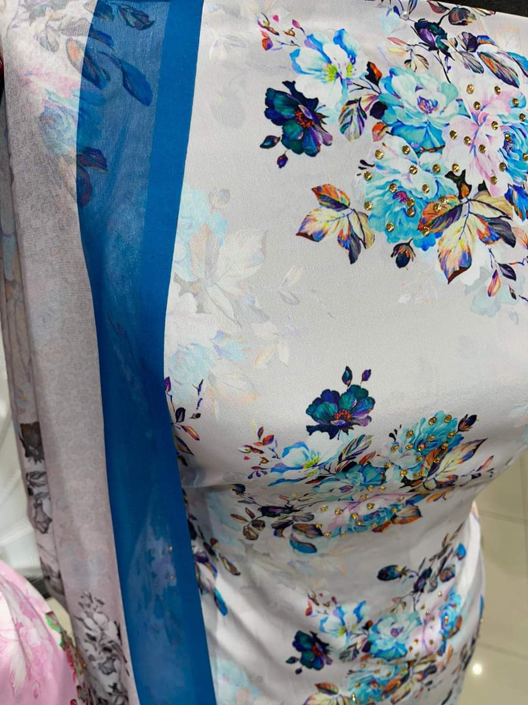 Casual wear, Italian digital print crepe with floral print and diamontes, comes with printed crepe dupatta.