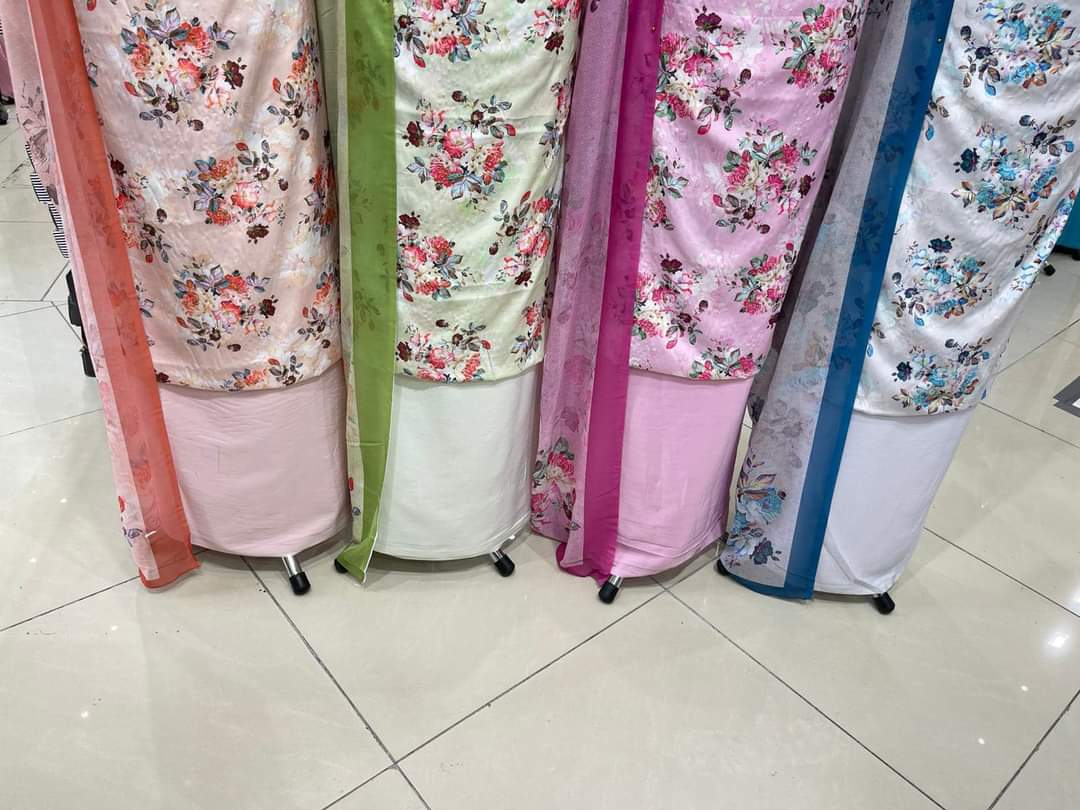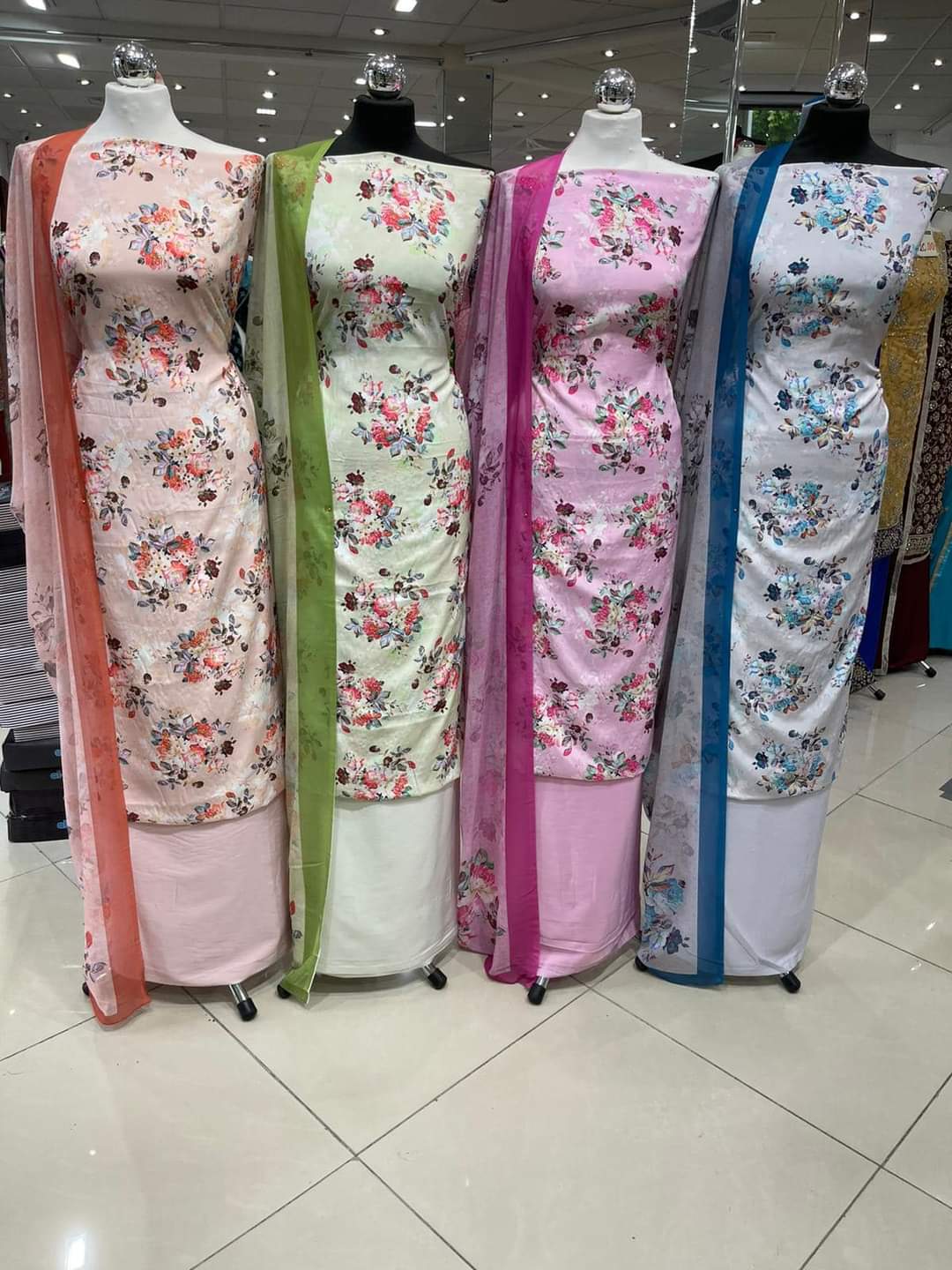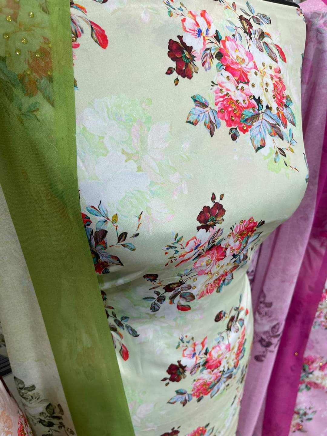 Casual wear, Italian digital print crepe with floral print and diamontes, comes with printed crepe dupatta.
