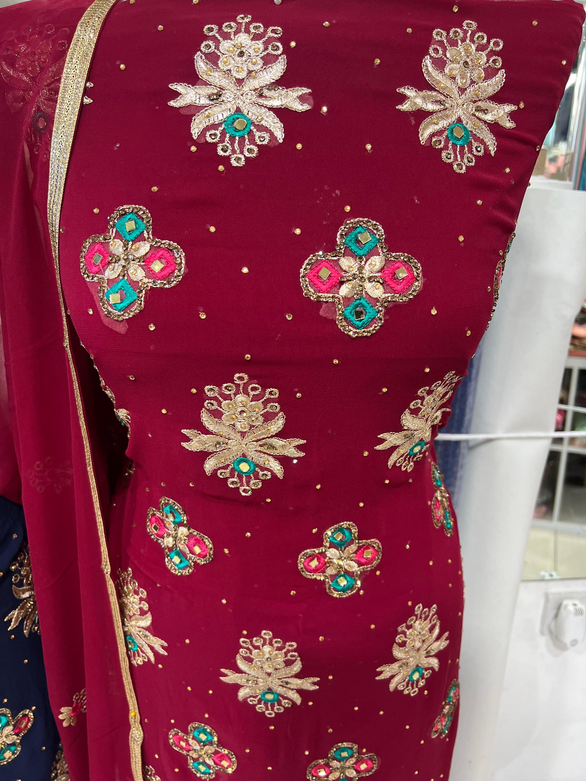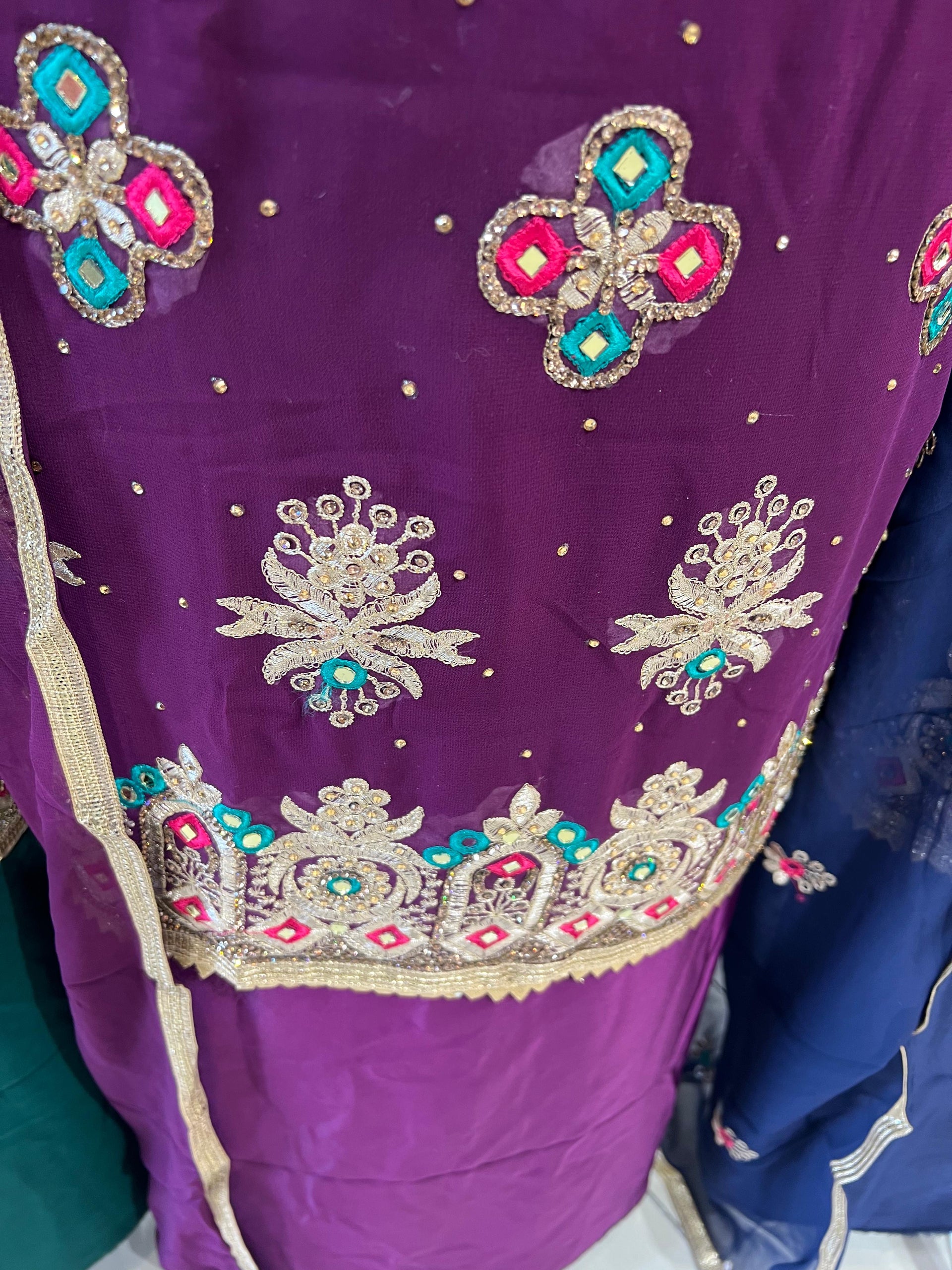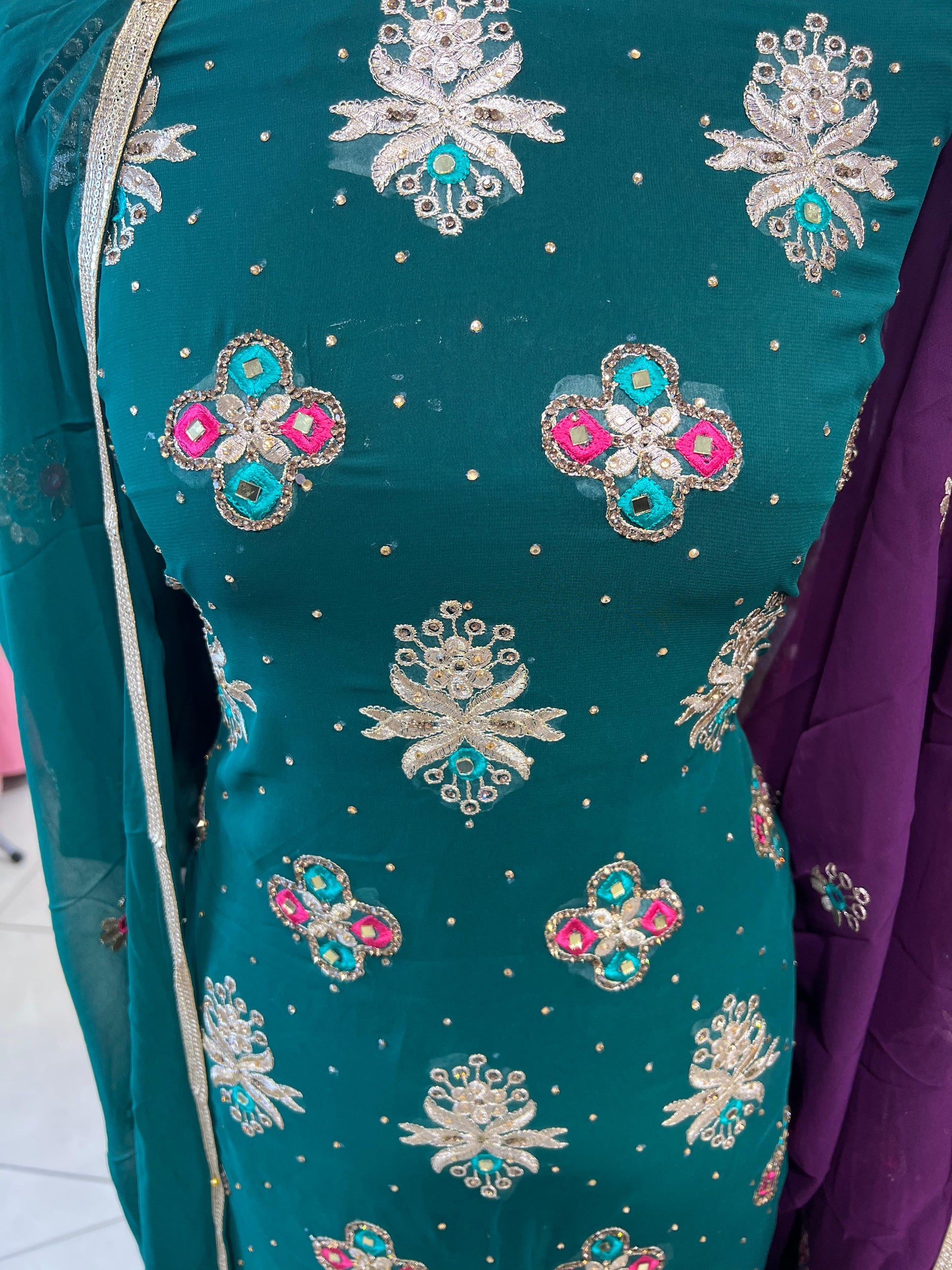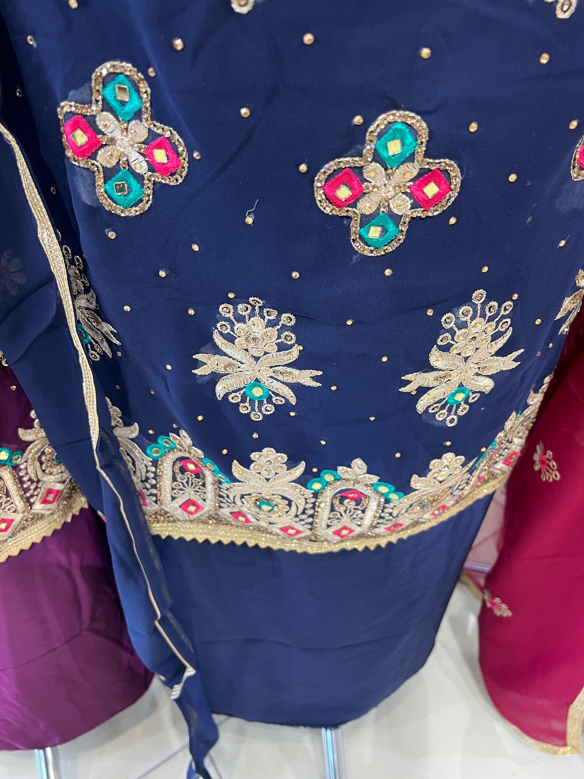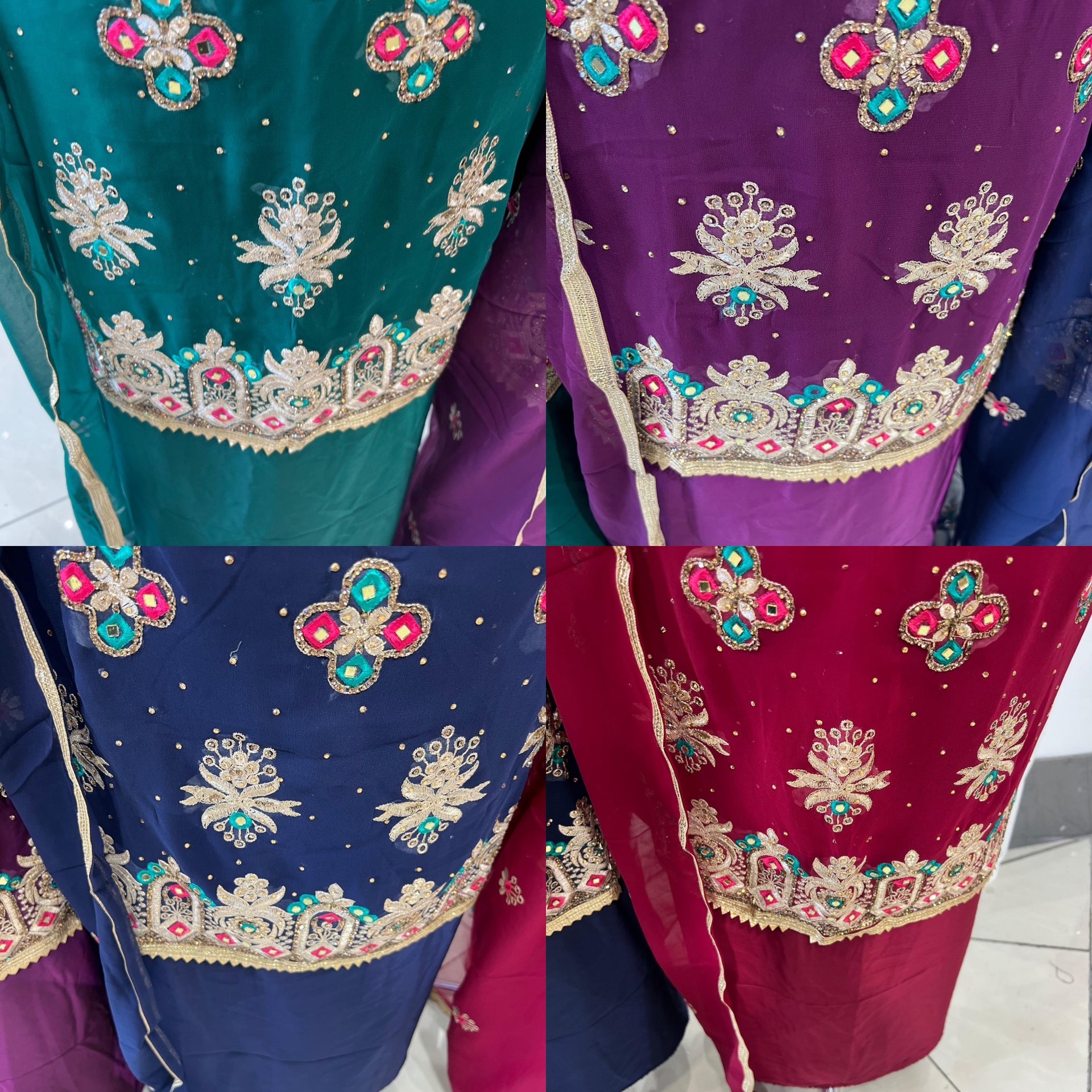 Discover elegance with our stunning collection of three different coloured Suits, each crafted from high-quality georgette fabric. Adorned with intricate thread embroidery and exquisite mirror work, these dresses are perfect for any occasion. Priced at just £23.99, elevate your wardrobe with these stylish pieces that combine comfort and sophistication.