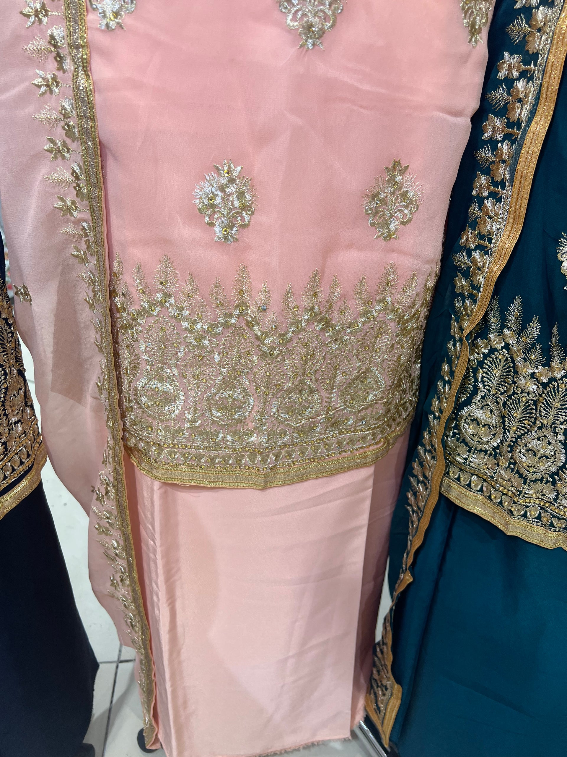 Discover the elegance of our Embroidered Georgette suits, available in a stunning array of colours to suit every occasion. Each suit features intricate thread embroidery that adds a touch of sophistication and uniqueness, making them perfect for both casual outings and formal events. The lightweight, breathable fabric ensures comfort while maintaining a flattering silhouette, allowing you to move with grace and confidence. Elevate your wardrobe with these versatile pieces that promise to turn heads and make a lasting impression.
