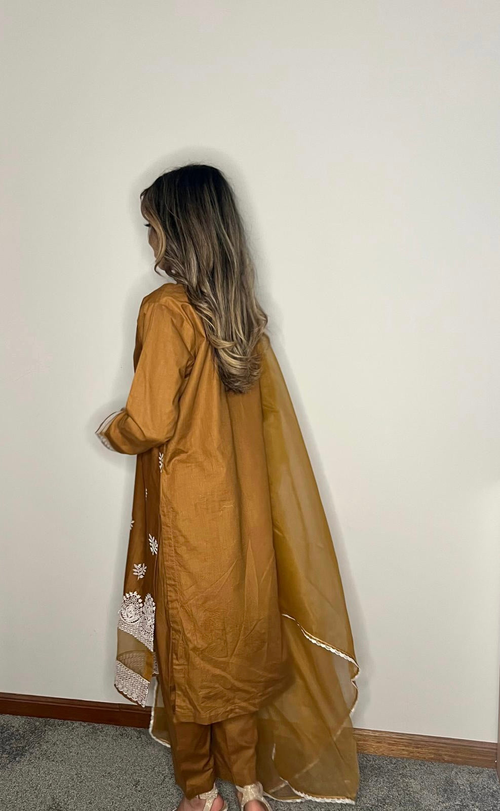 Ready to wear, Chikankari Cotton Pret, embellished suit with thread embroidery, comes with beautiful digital print organza dupatta. Available in sizes small to xxl.