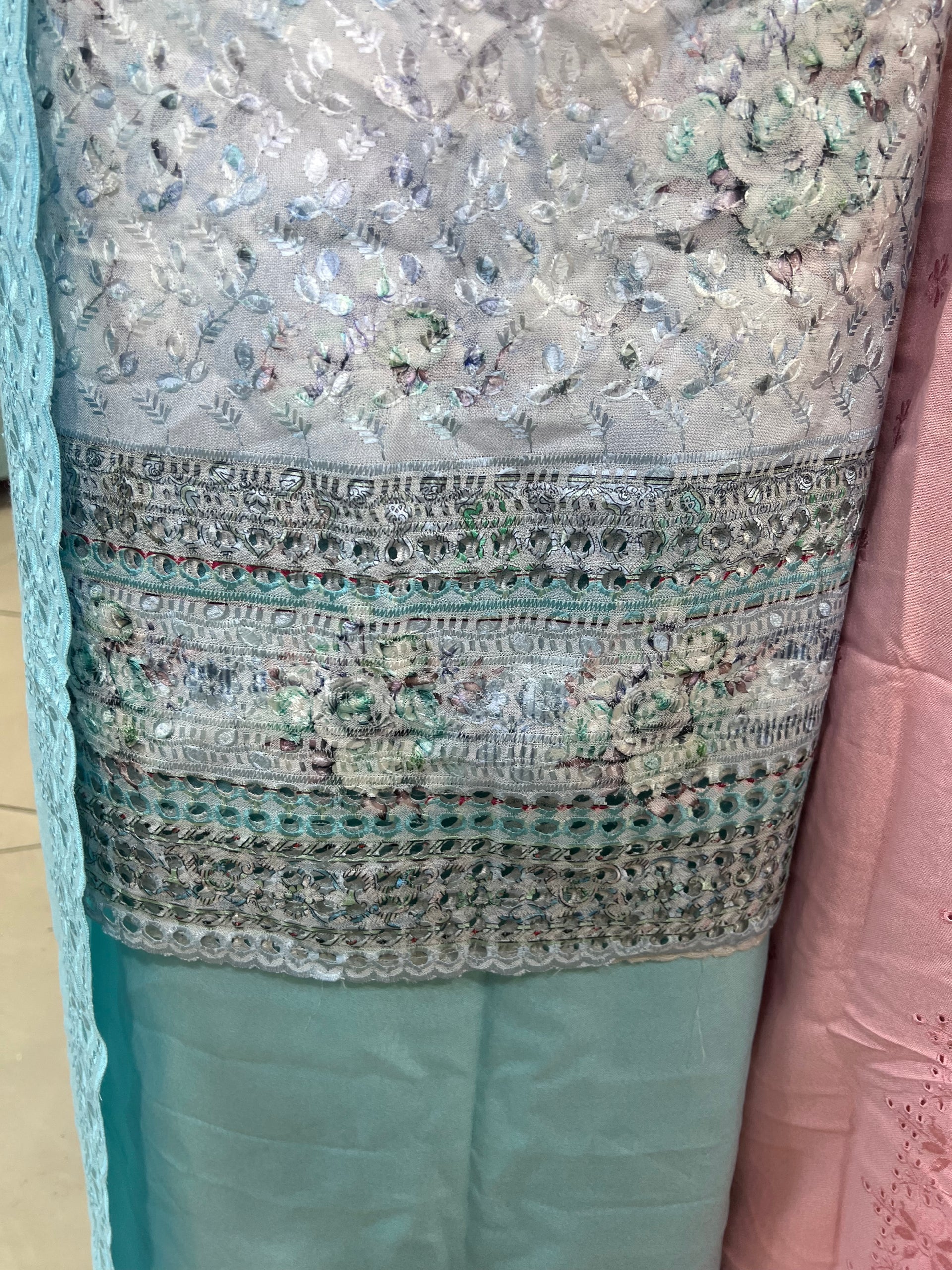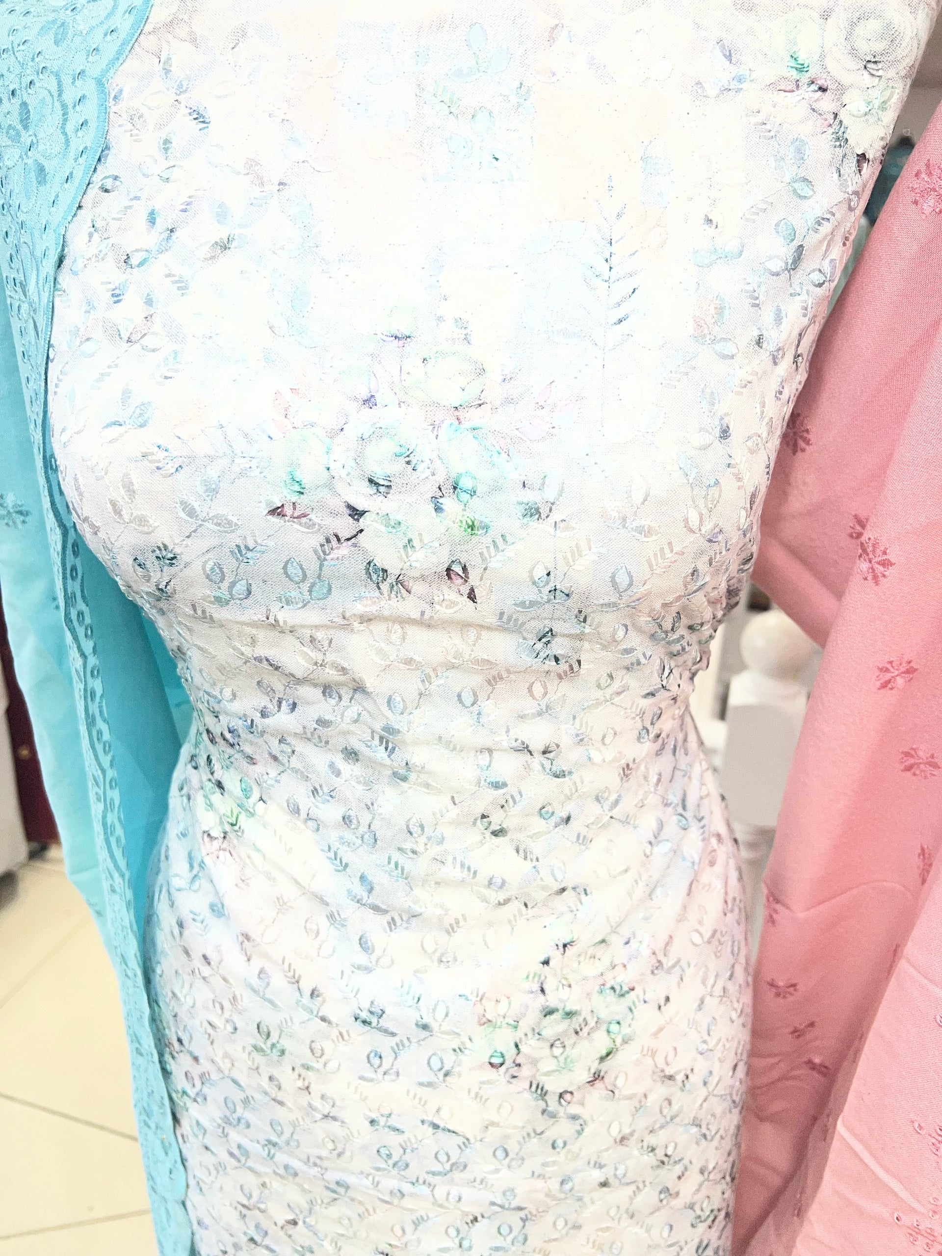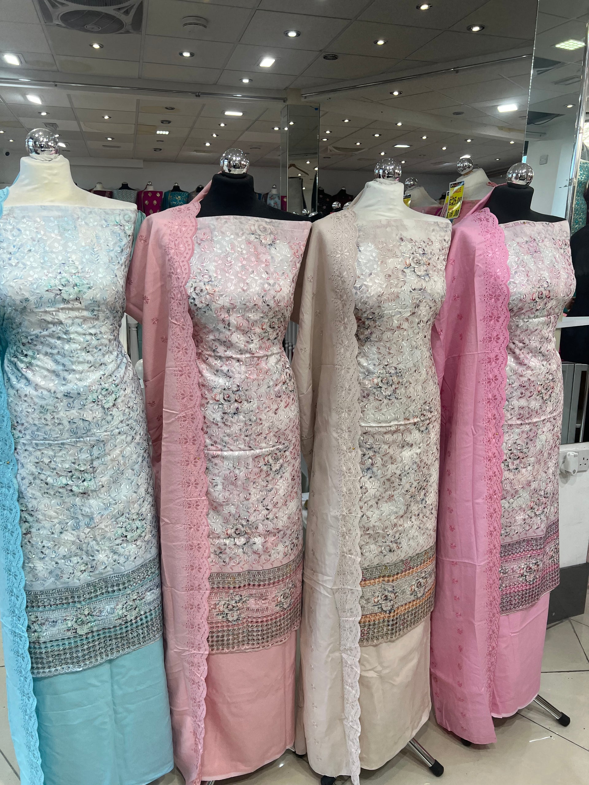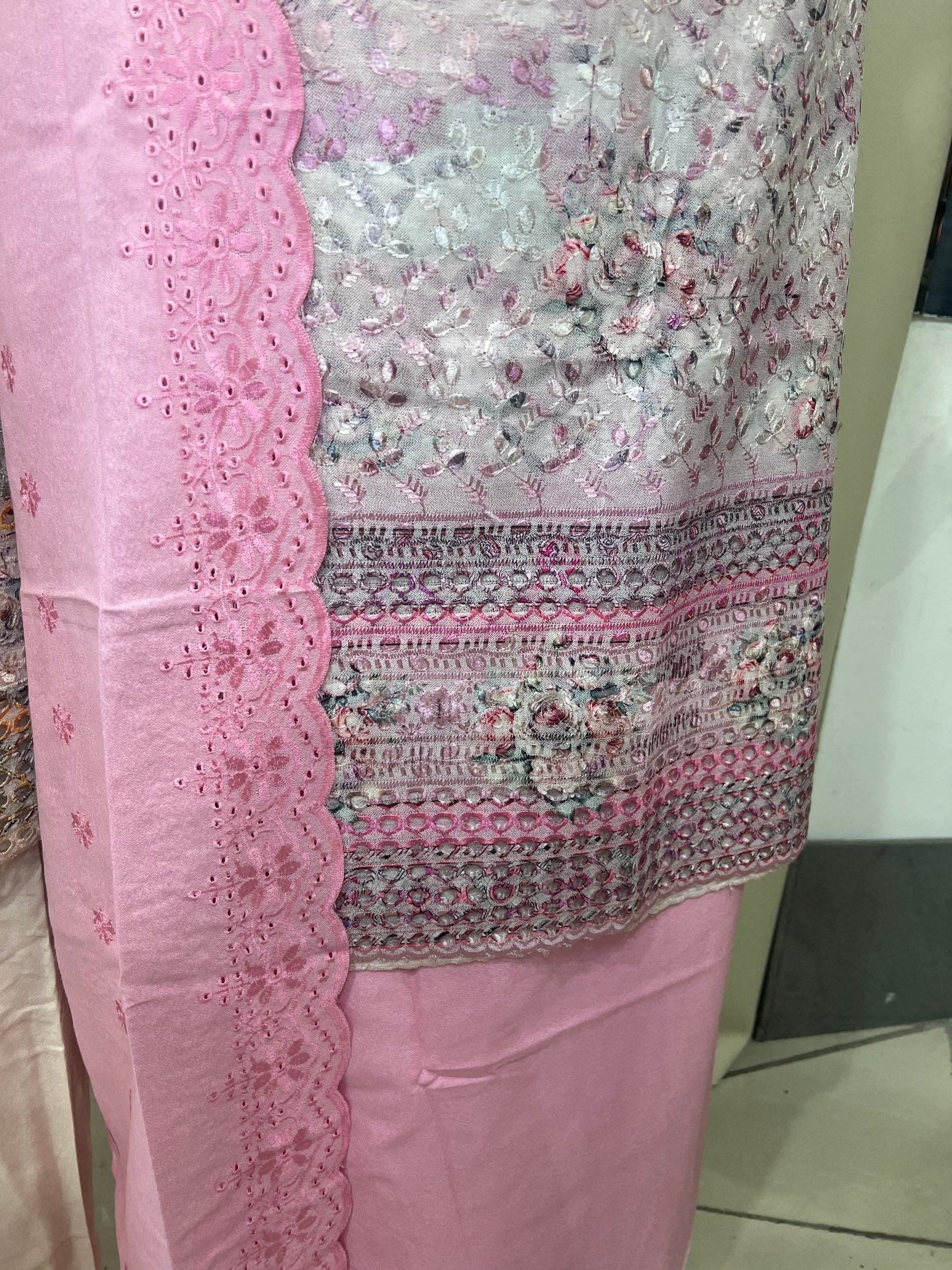 Discover the elegance of our embroidered chikankari alpine suit, designed to make a statement at any occasion. Each suit features intricate front and back embroidery, complemented by a stunning cutwork border that adds a touch of sophistication. The collection is beautifully paired with an embroidered alpine shawl, perfect for layering and enhancing your ensemble. Elevate your wardrobe with these timeless pieces that blend tradition with contemporary style, ensuring you stand out in any crowd.