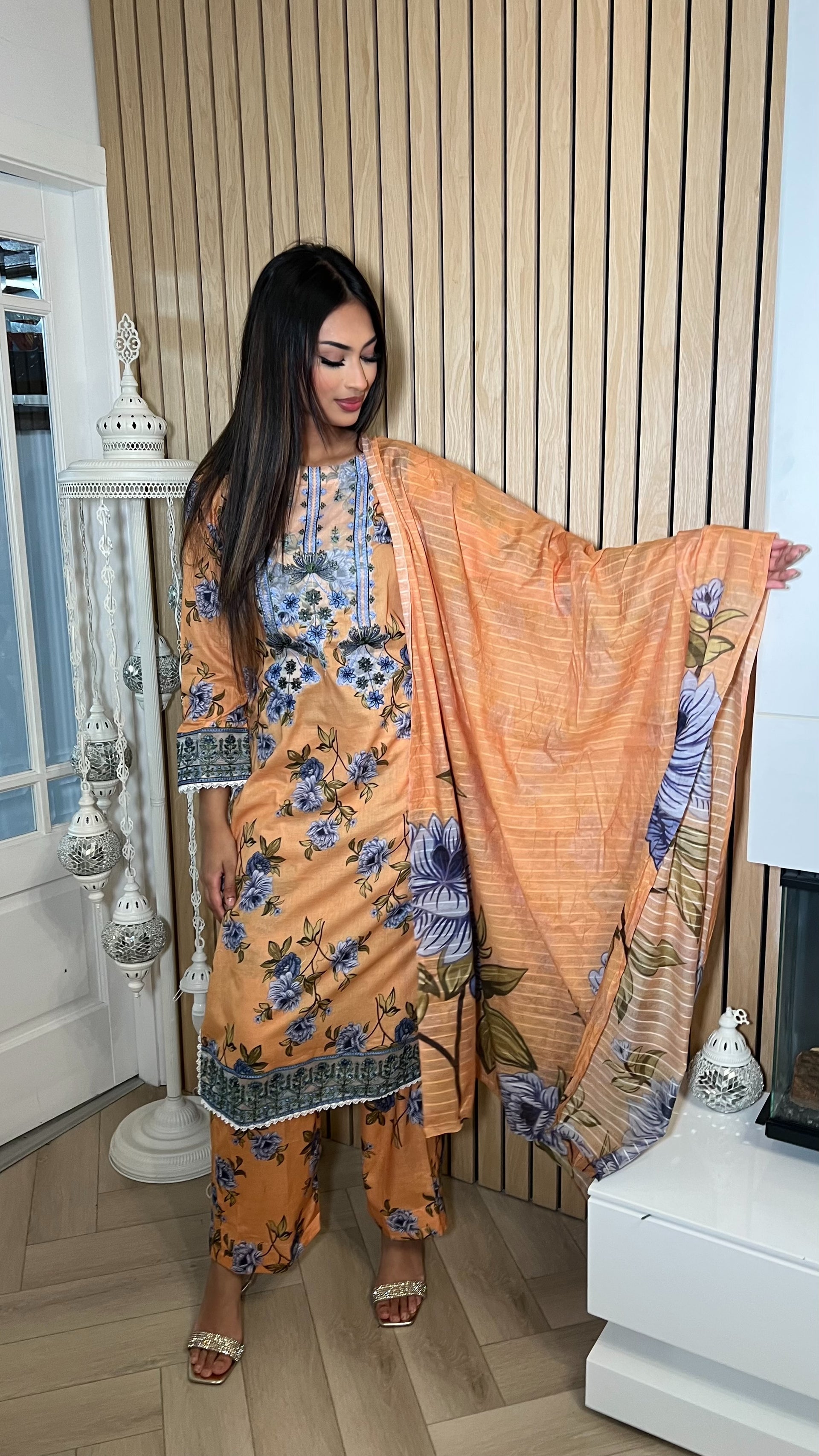 Iznik Inspired Summer/Spring Lawn- Peach Havana Floral