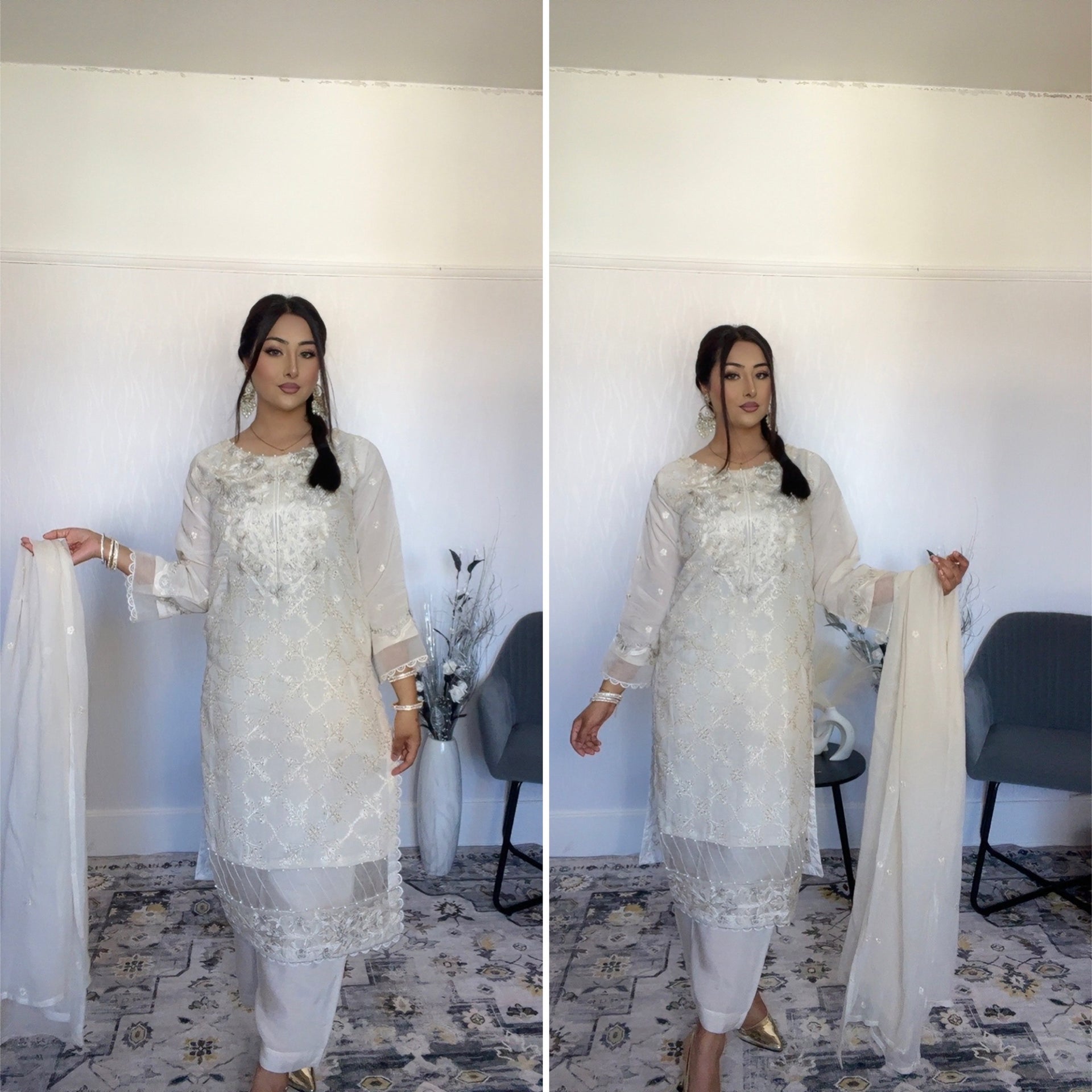 Crafted with intricate embroidery and delicate handwork, this suit exudes elegance and charm.